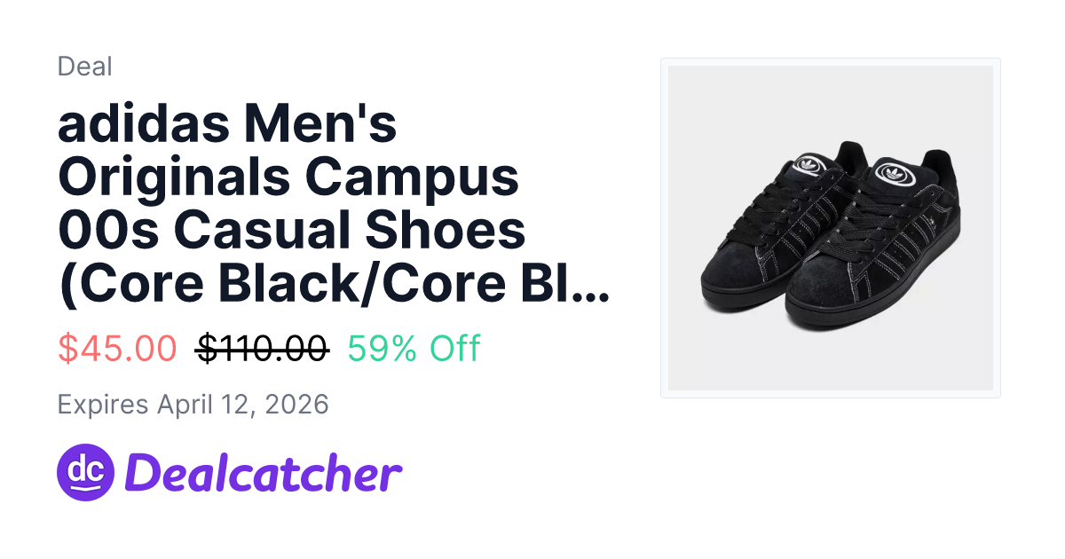 adidas Men's Originals Campus 00s Casual Shoes (Core Black/Core Black/White) .00 - $45