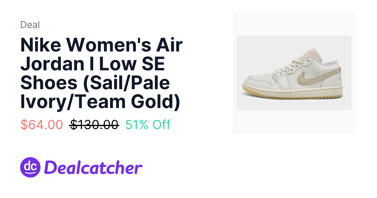 Nike Women's Air Jordan I Low SE Shoes (Sail/Pale Ivory/Team Gold) .00 - $64