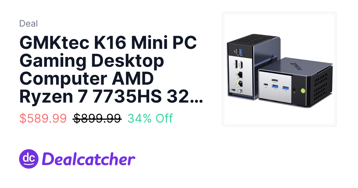 GMKtec K16 Mini PC Gaming Desktop Computer AMD Ryzen 7 7735HS 32GB LPDDR5 512GB SSD - $589.99