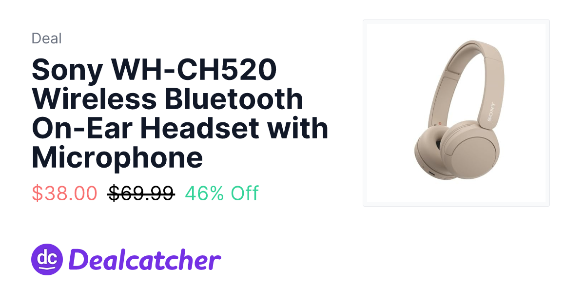 Sony WH-CH520 Wireless Bluetooth On-Ear Headset with Microphone .00 - $38