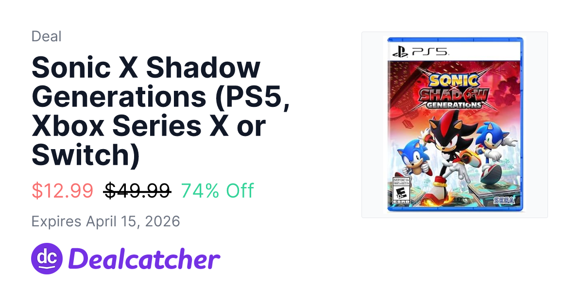 Sonic X Shadow Generations (PS5, Xbox Series X or Switch) - $12.99