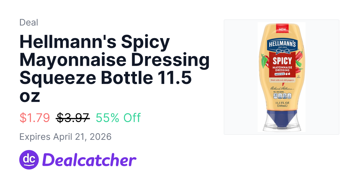 Hellmann's Spicy Mayonnaise Dressing Squeeze Bottle 11.5 oz - $1.79
