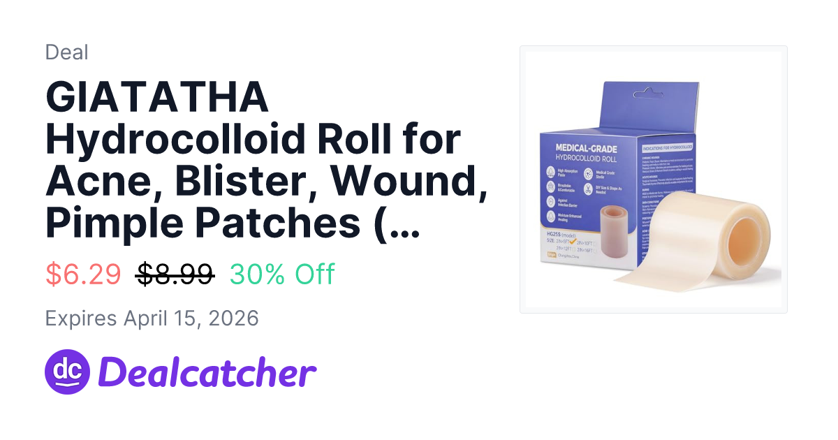 GIATATHA Hydrocolloid Roll for Acne, Blister, Wound, Pimple Patches (2in*5ft) - $6.29
