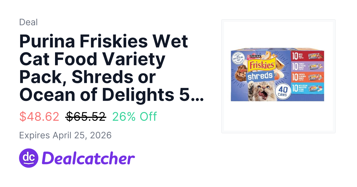 Purina Friskies Wet Cat Food Variety Pack, Shreds or Ocean of Delights 5.5 oz. Cans 80 Count, x2 - $48.62