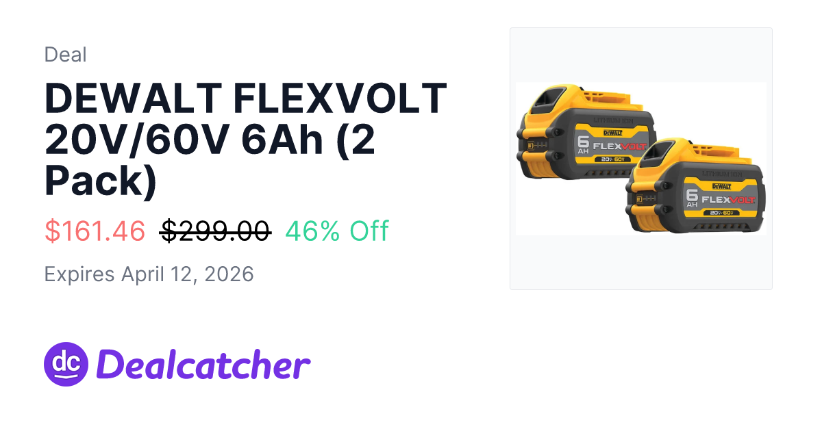 DEWALT FLEXVOLT 20V/60V 6Ah (2 Pack) - $161.46