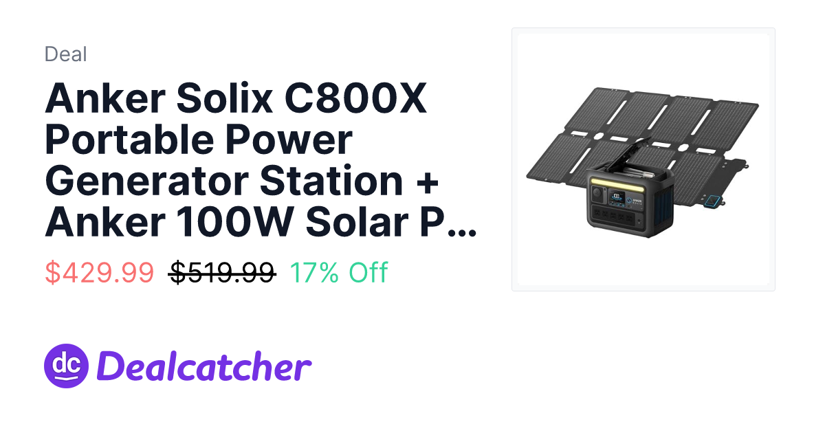 Anker Solix C800X Portable Power Generator Station + Anker 100W Solar Panel - $429.99