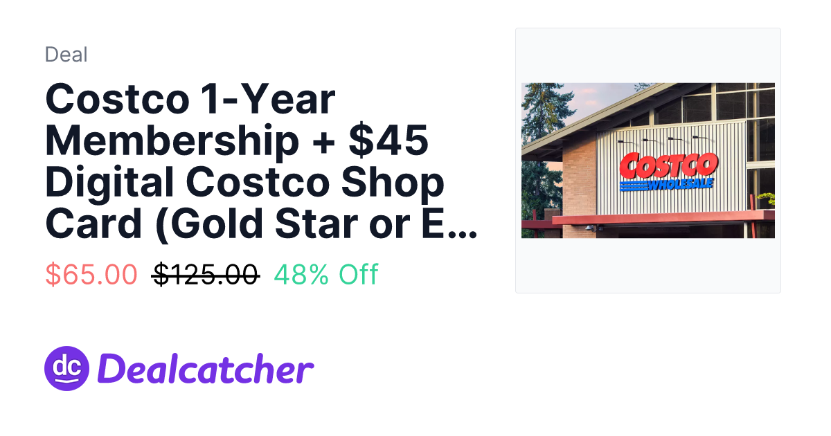 Costco 1-Year Membership + $45 Digital Costco Shop Card (Gold Star or Executive) .00 - $65