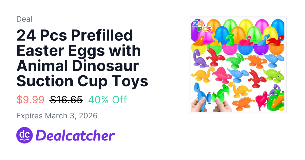 24 Pcs Prefilled Easter Eggs with Animal Dinosaur Suction Cup Toys - $9.99