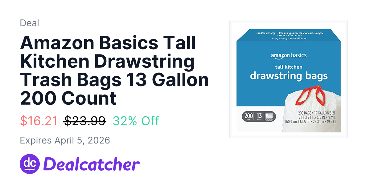 Amazon Basics Tall Kitchen Drawstring Trash Bags 13 Gallon 200 Count - $16.21