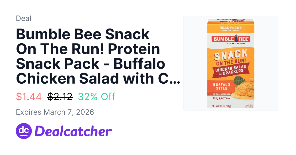 Bumble Bee Snack On The Run! Protein Snack Pack - Buffalo Chicken Salad with Crackers - 10g Protein (Pack of 1) - $1.44
