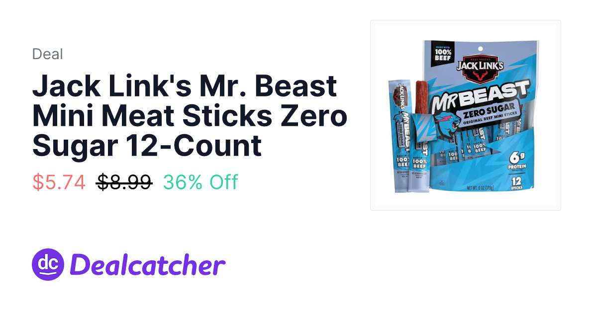 Jack Link's Mr. Beast Mini Meat Sticks Zero Sugar 12-Count - $5.74