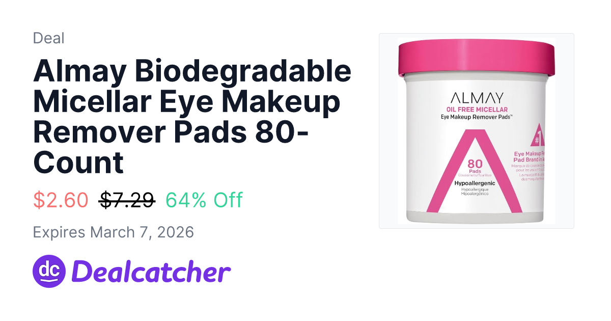 Almay Biodegradable Micellar Eye Makeup Remover Pads 80-Count 0 - $2.6