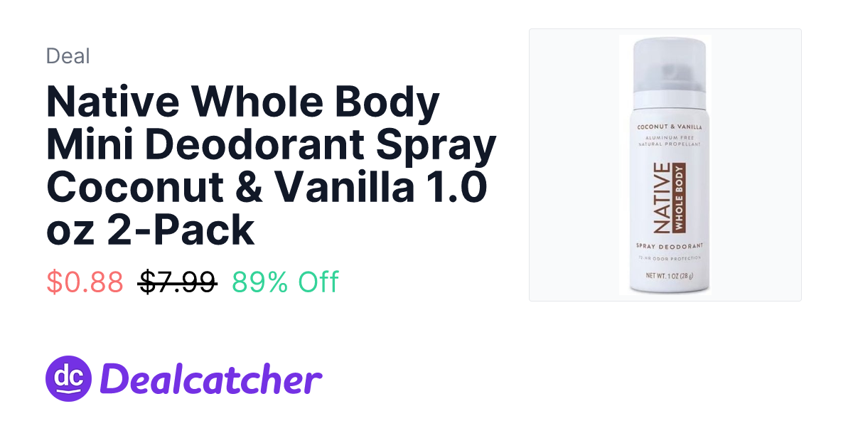 Native Whole Body Mini Deodorant Spray Coconut & Vanilla 1.0 oz 2-Pack - $0.88