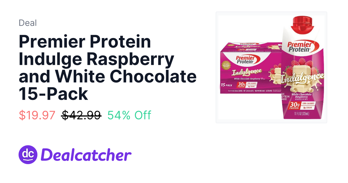 Premier Protein Indulge Raspberry and White Chocolate 15-Pack - $19.97