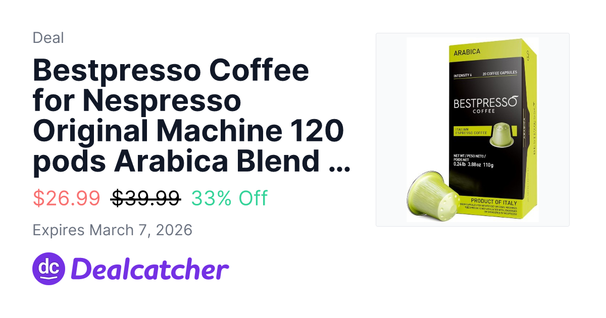 Bestpresso Coffee for Nespresso Original Machine 120 pods Arabica Blend Light Intensity - $26.99