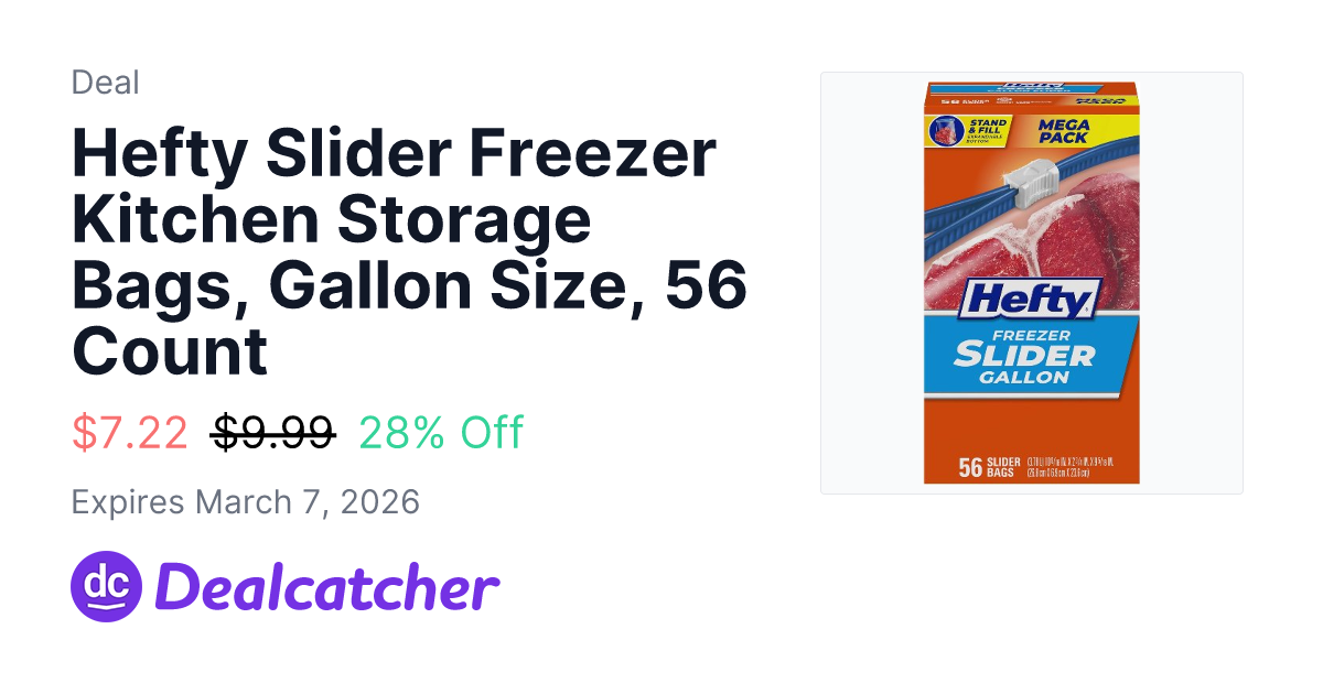 Hefty Slider Freezer Kitchen Storage Bags, Gallon Size, 56 Count - $7.22