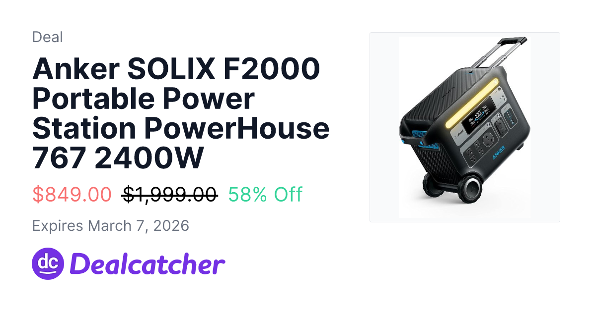Anker SOLIX F2000 Portable Power Station PowerHouse 767 2400W - $899.99