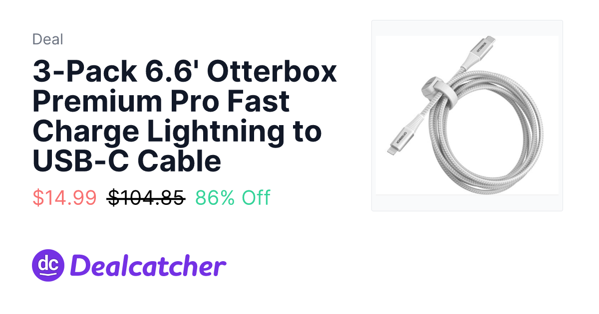 3-Pack 6.6' Otterbox Premium Pro Fast Charge Lightning to USB-C Cable - $14.99