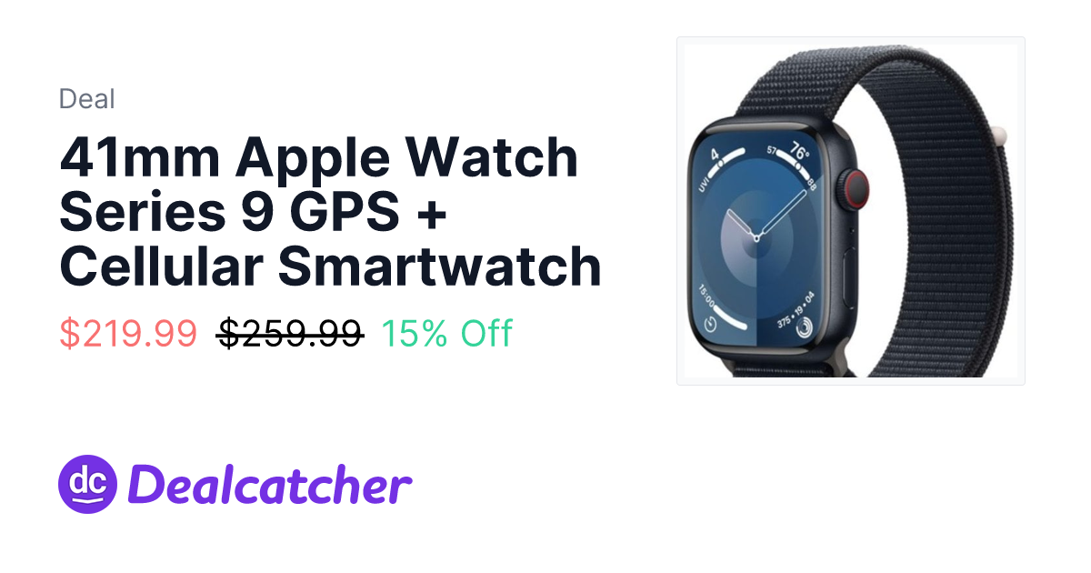 41mm Apple Watch Series 9 GPS + Cellular Smartwatch - $219.99