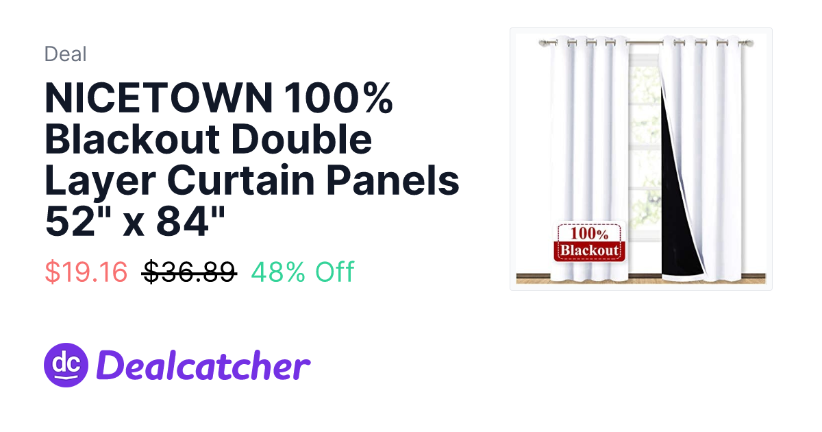 NICETOWN 100% Blackout Double Layer Curtain Panels 52" x 84" - $19.16
